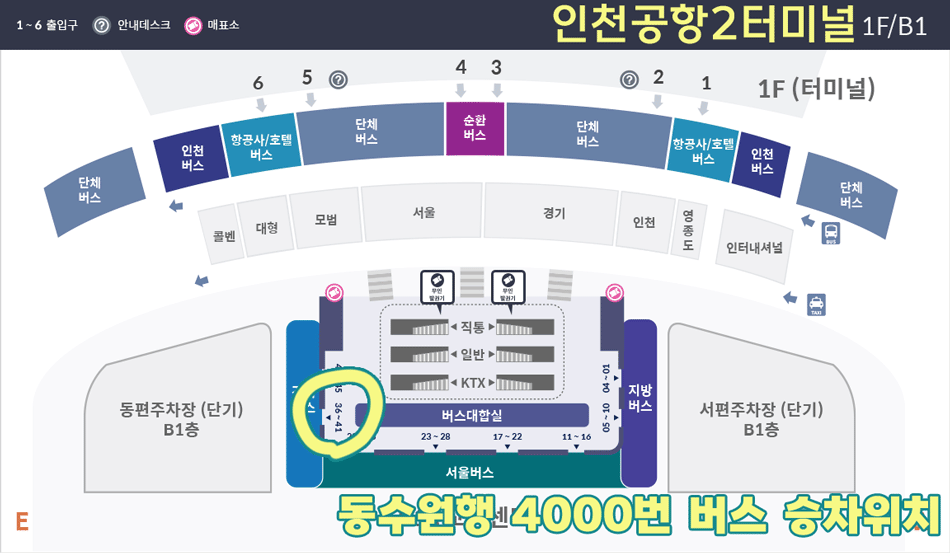 인천공항에서 동수원 가는 4000번 버스 승차위치